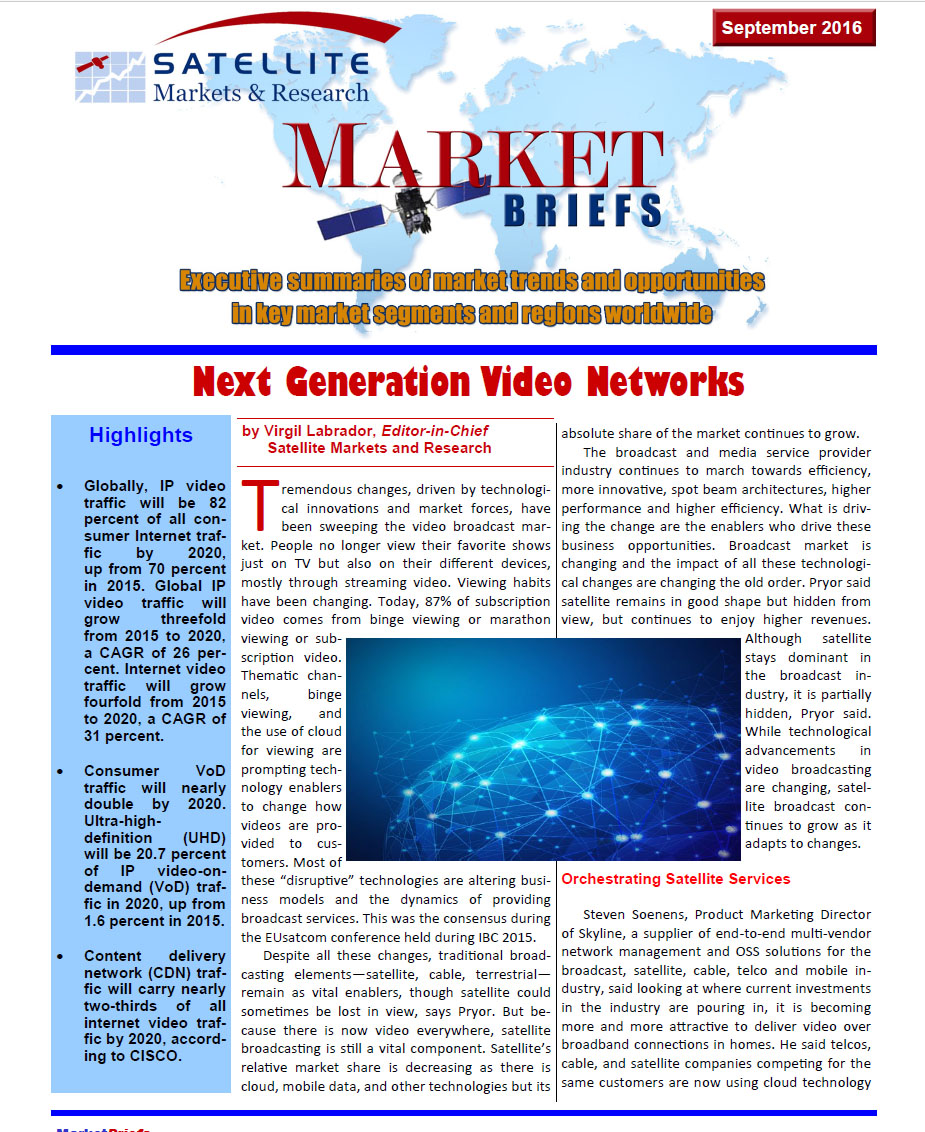 MarketBriefs Report on the Broadcast Services Market sponsored by The Spaceconnection. To read or download this report click here.