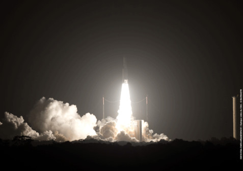 Kourou, French Guiana, March 9, 2016 –The successful lift-off of the Ariane rocket carrying the EUTELSAT 65 West A satellite into space lit up the night sky today in Kourou, French Guiana. The Ariane launcher ferrying Eutelsat’s newest satellite into space took off on 9 March at 02.20 (05.20 UTC) and delivered EUTELSAT 65 West A into its transfer orbit after a 27-minute flight.
