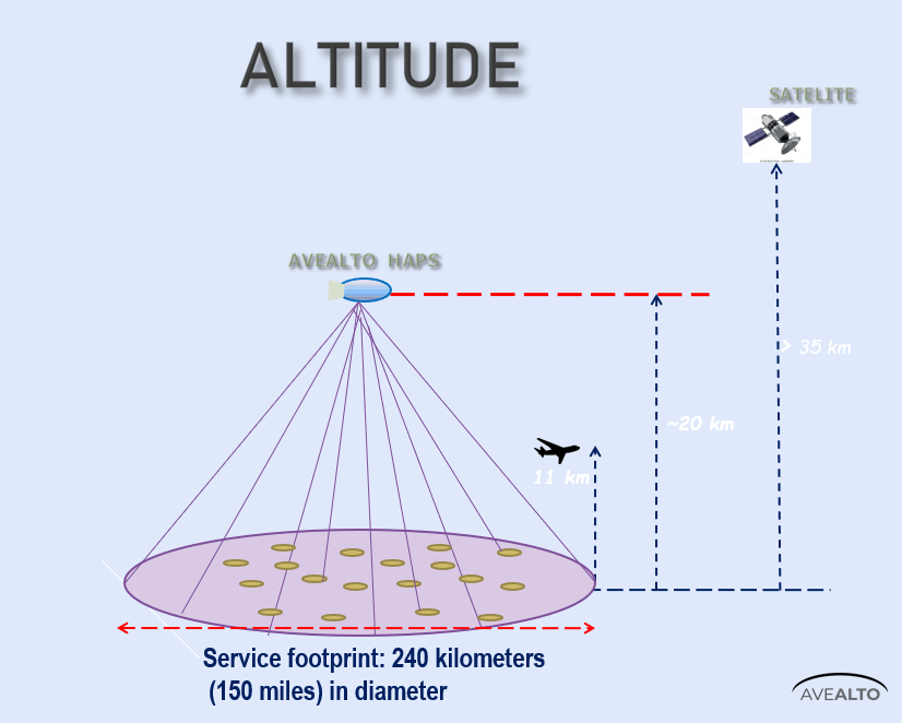 | AVEALTO’s High Altitude Platforms (HAP) will operate at a much lower altitude than satellites resulting in less latency and can be deployed within 2-3 months as opposed to years with satellites. |