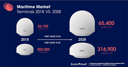“The VSAT market is anticipated to grow quickly; the number of terminals should increase to more than 65,000 in 2028,” said Xavier Lansel, senior consultant at Euroconsult. “As a consequence, VSAT solutions will generate more than 90% of the maritime satellite communications revenue in 2028. VSAT revenue is anticipated to increase to $2.7 billion by the end of the decade.”