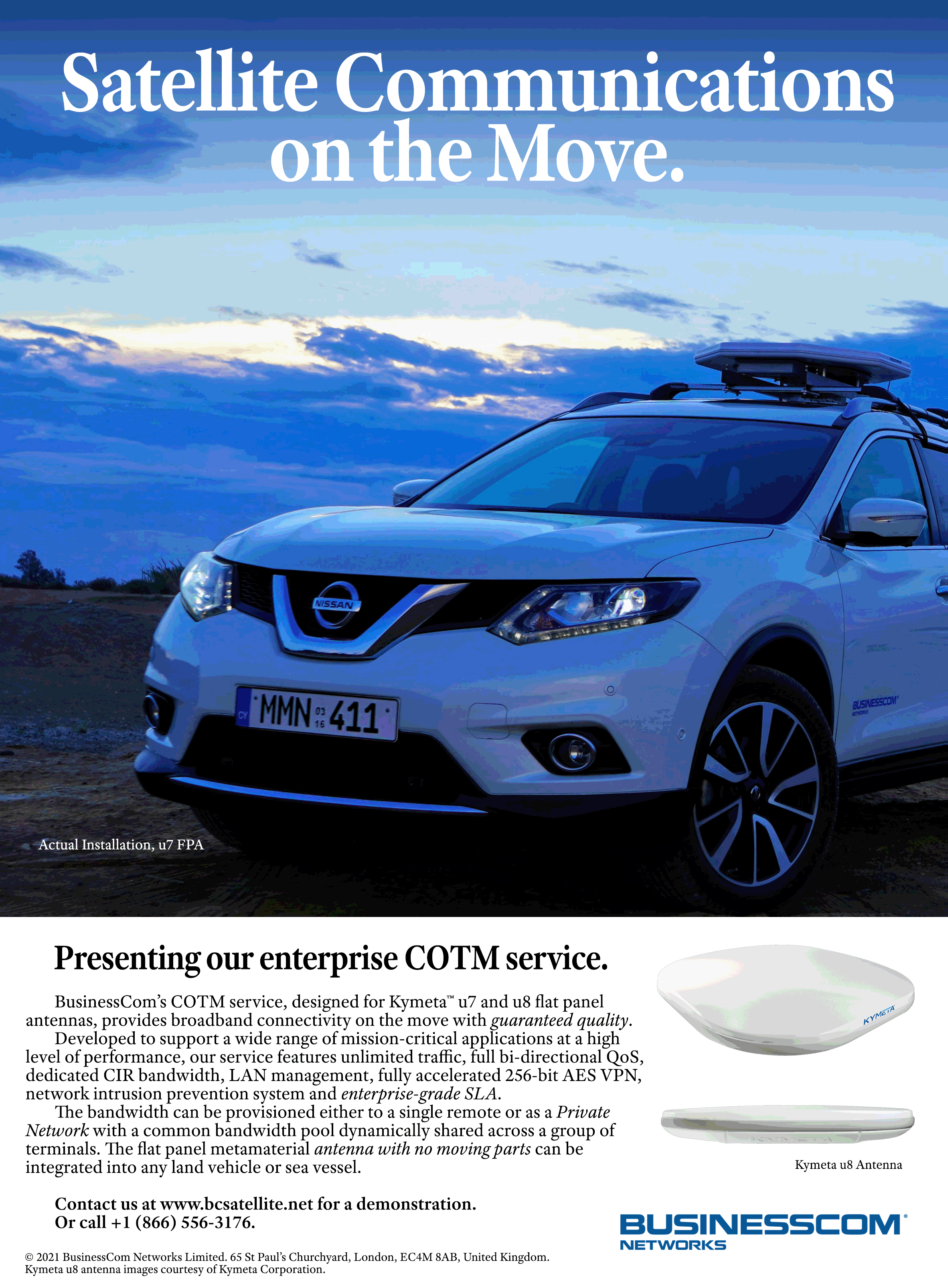“BusinessCom has adapted its capabilities with the goal of delivering the most high-performance COTM service available on the market today. We have paused and asked ourselves—can on-the-move services offer enterprise-grade reliability with unlimited data? We asked ourselves what had to be done to make this happen. I believe we have achieved this quite successfully. Unlike our competitors offering best-effort connectivity with data caps, BusinessCom offers its COTM service with fully unlimited bandwidth and an enterprise-grade SLA. At our price point we believe we are delivering exceptional value to users seeking for on-the-move connectivity for intensive use, such as high-definition streaming and high-volume data transfers. For many user applications our unlimited COTM service, billed at a flat monthly fee, provides typically 2-3 times better OpEx than other services billed on a per-GB (or per-MB) basis, and the users don’t have to worry about reaching hard data caps. The solution is especially effective if you consider a fleet of vehicles or sea vessels sharing the same bandwidth pool, offering unprecedented capability, at the cost lower than competition,” said BusinessCom’s CTO and Founder Maxim Usatov.