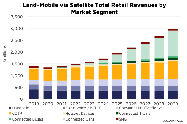 “Longer-term, NSR sees accelerated revenue growth driven by a fundamental shift from narrowband applications and towards broadband as a share of revenues” said Alan Crisp, NSR senior analyst and report author. “Greater COTP usage, and the growth of connected vehicle markets, all point to additional life being injected into land mobile. Inmarsat Land Xpress, Iridium Certus, LEO-HTS constellations and more all contribute to new revenue opportunities over MSS narrowband data and voice usage,” he added.