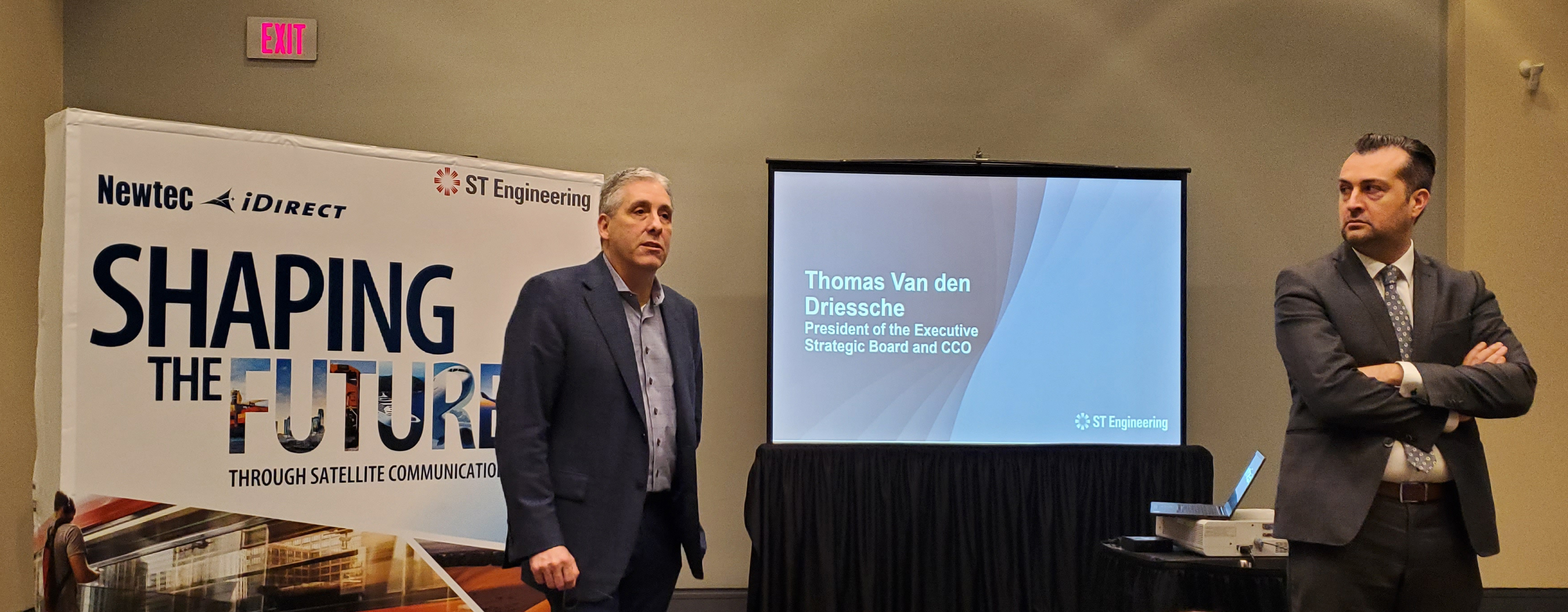 | ST Engineering iDirect CEO Kevin Steen (on left) and President of the Executive Strategic Board and Chief Commercial Officer (CCO) Thomas Van den Driessche presented their merged company's vision and direction going forward. |
