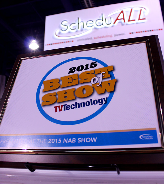 Las Vegas, Nevada, April 16, 2015--TV Technology magaziine has announced that ScheduALL, the leading global provider of Enterprise Resource Management (ERM) solutions for media, broadcast and transmission businesses, has been awarded one of the industry's most prestigious technology honors, the Best of Show Award, at the 2015 NAB Show in Las Vegas. ScheduALL won the award for their revolutionary new product ScheduALL Portal™.