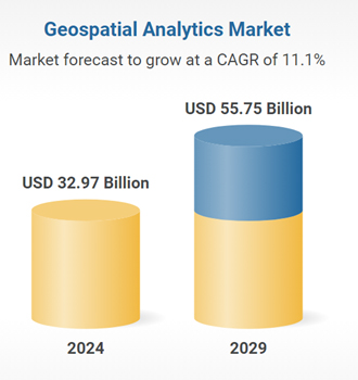 In 2022, Euroconsult (now part of NovaSpace) forecasted that the earth observation data and services market would be worth US$7.9 billion in 2031, with approximately US$5 billion of this being accounted for by services. Key sectors were: defense, natural resources, infrastructure and energy. Other analysts are significantly more bullish. Markets and Markets, for example, valued the geospatial analytics market at US$32.97 billion in 2024, growing to US$55.75 billion by 2029.