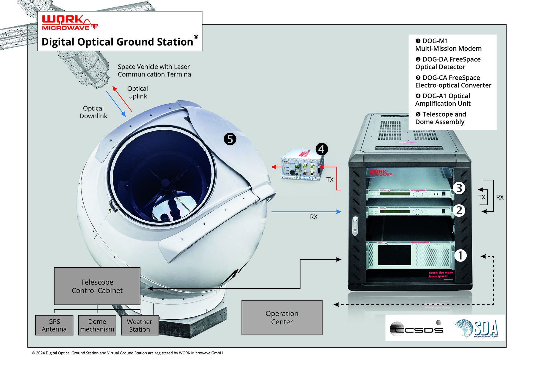 Holzkirchen, German, y March 6, 2024--WORK Microwave, one of the leading manufacturers of advanced satellite communications equipment, launched its end-to-end Communication Package suite of equipment for multi-mission optical ground stations according to SDA and CCSDS standards.